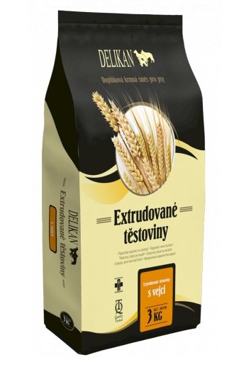 Extrudované krmivo s přidanými vejci, které svým složením odpovídá těstovinám. Nevaří se a je vhodné jako příloha k masitým pokrmům a konzervám.